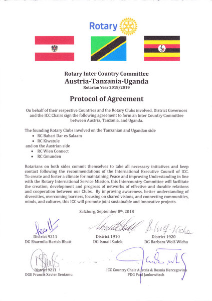 Die enge persönliche Beziehung zwischen den österreichischen Distrikten 1910 und 1920 zum ostafrikanischen Distrikt 9211 (aus Uganda und Tansania) hat den Abschluss eines Länderausschusses