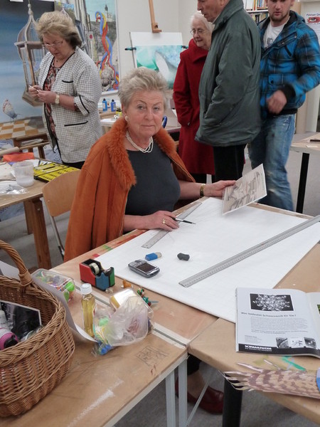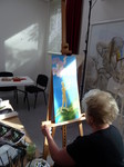 Unten geben einige Fotos einen Eindruck von den Kunstseminaren (1. Reihe: erste Versuche in der Ölmalerei; Komposition und Farbenlehre, Grundlagenkurs; 2. Reihe: Intensivseminare)