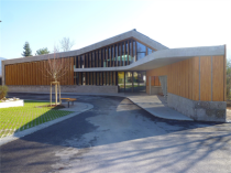 Architekt Michael STROBL hat den geladenen Wettbewerb gewonnen und tausend Quadratmeter Nutzfläche über drei Etagen (Lift!) gestaltet. Hauptsächliches Material: Holz und Konglomeratsteine.